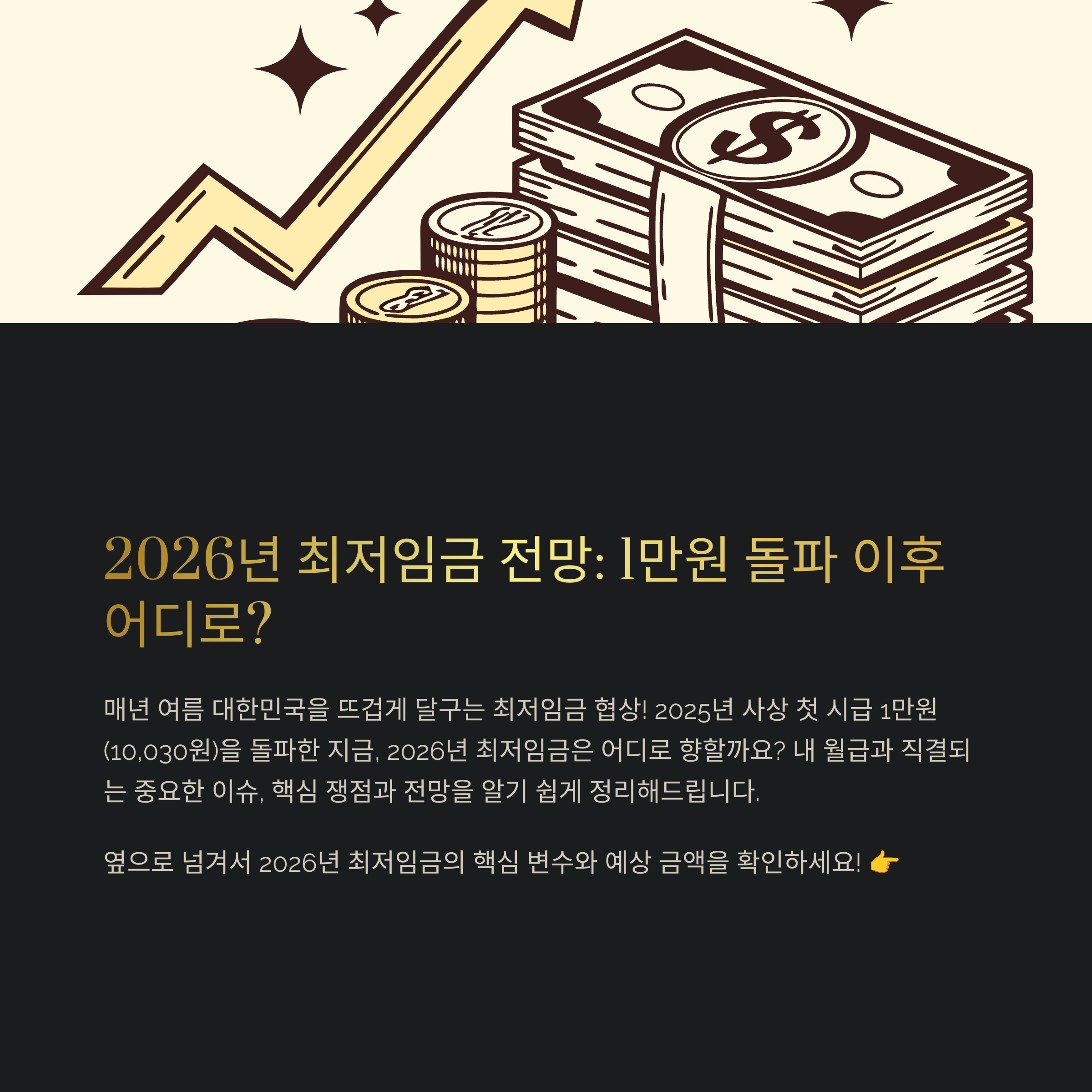 2026년 최저임금, 과연 얼마나 오를까요? 매년 여름, 대한민국을 뜨겁게 달구는 최저임금 협상! 내 월급과 직결되는 만큼 모두의 관심이 쏠릴 수밖에 없는데요. 2025년 최저임금이 사상 첫 1만원을 돌파한 지금, 2026년 최저임금은 과연 어디를 향하게 될지 핵심 쟁점과 전망을 알기 쉽게 정리해 드릴게요!매년 이맘때쯤이면 '내년 최저임금'이 얼마나 오를지 다들 한 번쯤 검색해보지 않으시나요? 저 역시 월급날만 기다리는 평범한 직장인이라, 최저임금 소식에 귀를 쫑긋 세우게 되더라고요. 😊 특히 2025년에 드디어 시급 1만원을 넘어서면서, 앞으로의 인상 폭에 대한 기대와 우려가 공존하는 것 같아요. 과연 2026년 최저임금은 우리에게 어떤 영향을 미치게 될까요? 최저임금, 도대체 어떻게 결정되나요? ?..