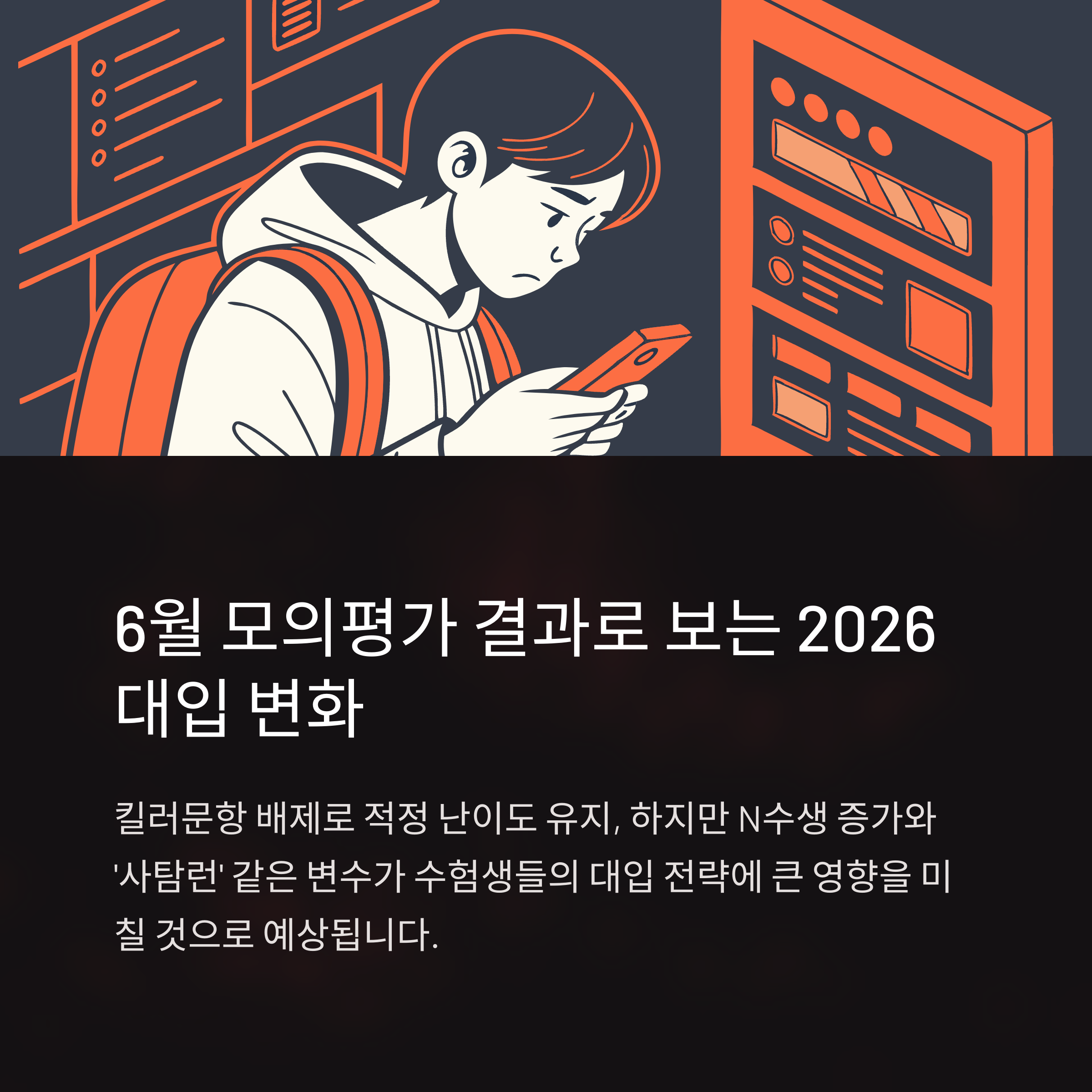 6월 모의평가, '적정 난이도'가 가져올 대입 변화는? 킬러문항 배제로 변별력에 대한 우려가 커지는 지금, N수생 증가와 '사탐런' 같은 변수가 수험생들의 대입 전략에 어떤 영향을 미칠지 자세히 알아보세요! 안녕하세요, 수험생 여러분! 다들 6월 모의평가 잘 치르셨나요? 이번 모의평가가 '적정 난이도'를 유지했다는 평가를 받으면서, 앞으로 대입 전략을 어떻게 세워야 할지 고민이 많으실 것 같아요. 저도 학창 시절에 모의고사를 보고 나면 늘 성적표 한 장에 희비가 엇갈렸던 기억이 나네요. 😅 이번 6월 모의평가가 단순한 시험이 아니라, 여러분의 대입 로드맵을 다시 짜는 중요한 나침반이 될 수 있다는 점, 꼭 기억해야겠죠? 함께 자세히 살펴볼까요? 킬러문항 없는 '적정 난이도', 그 의미는? ✨이번 6월 ..