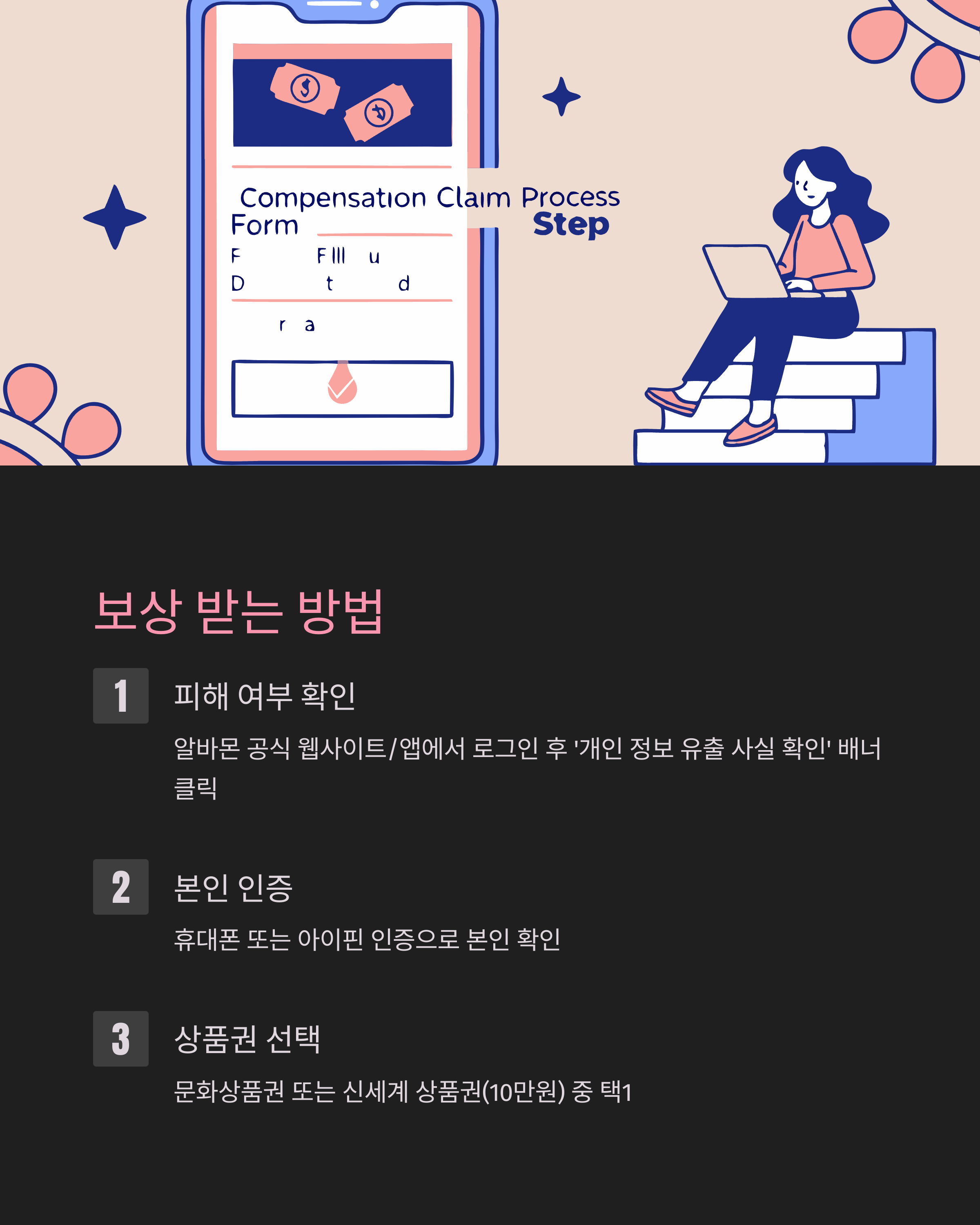 피해 사실을 확인하셨다면, 이제 가장 중요한 보상 신청 방법을 알아볼 차례입니다. 알바몬은 이번 보상을 10만원 상당의 '문화상품권' 또는 '신세계 상품권'으로 지급한다고 합니다. 어떤 상품권을 받을지는 피해자 개인이 선택할 수 있다고 해요. 저는 솔직히 둘 다 유용해서 뭘 선택해야 할지 고민되더라고요. 🤔