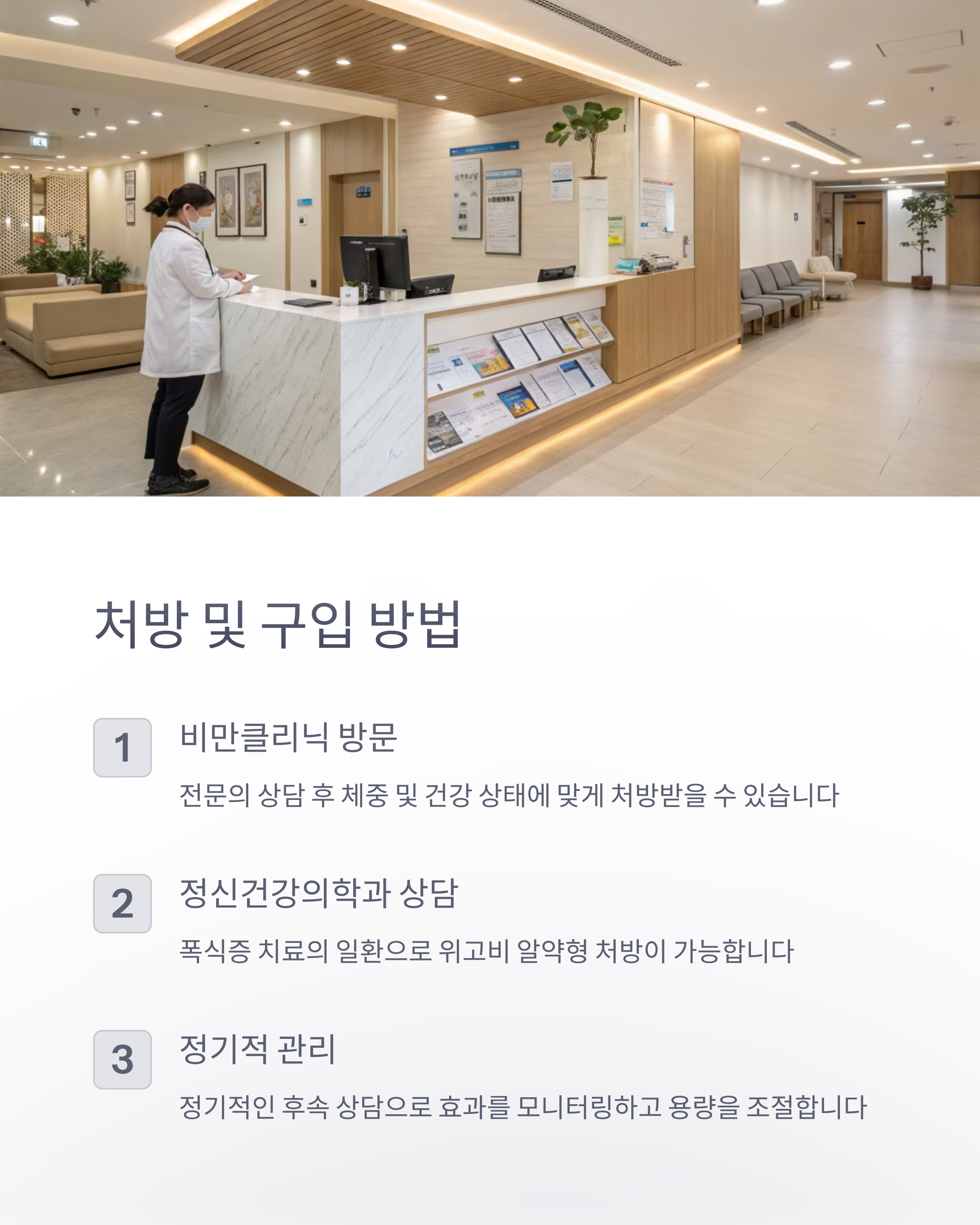 | 폭식 경향 | 식욕 억제 목적의 정신건강 클리닉 내 처방 가능 |