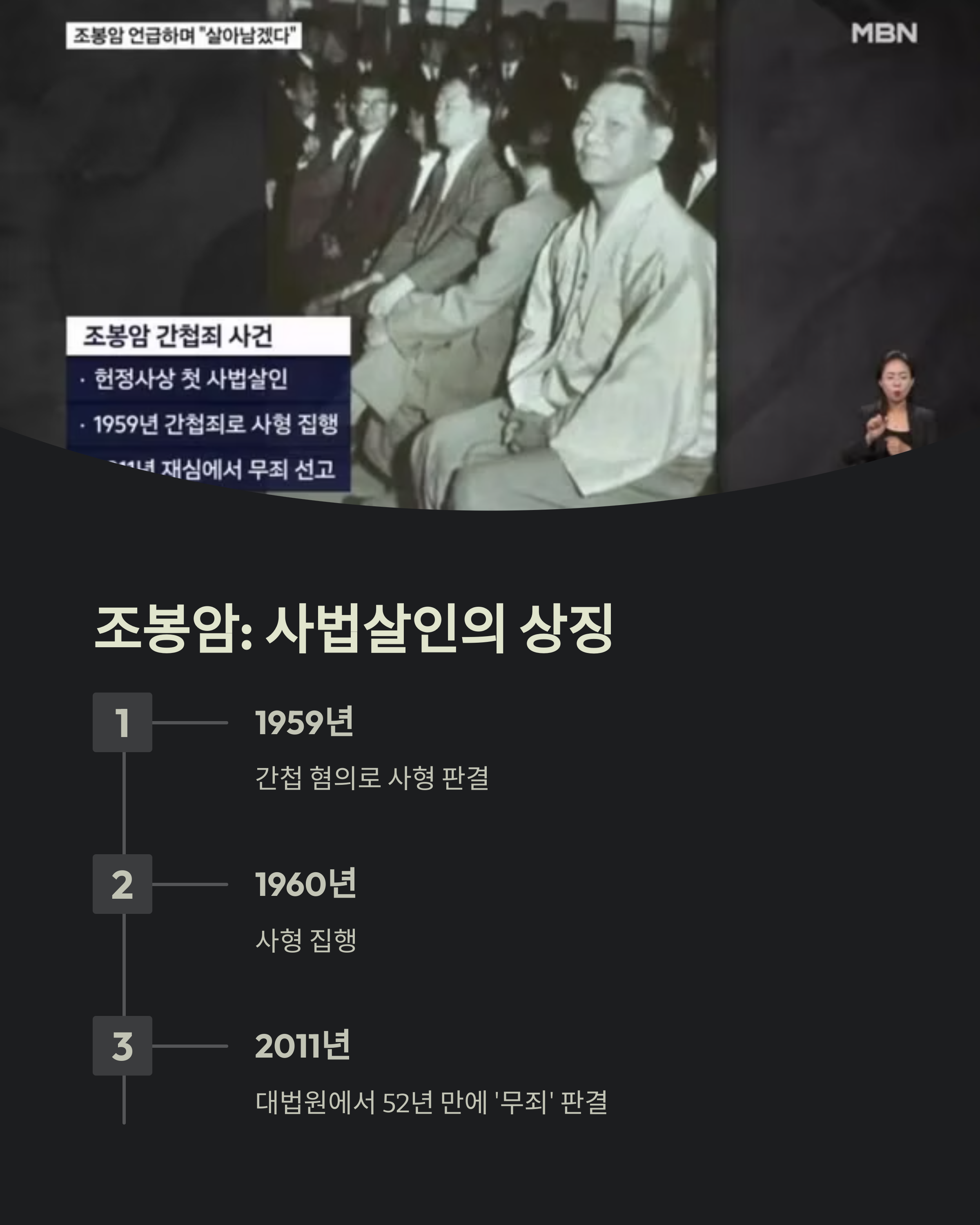 - 2011년 대법원에서 52년 만에 ‘무죄’ 판결, 사법살인 인정