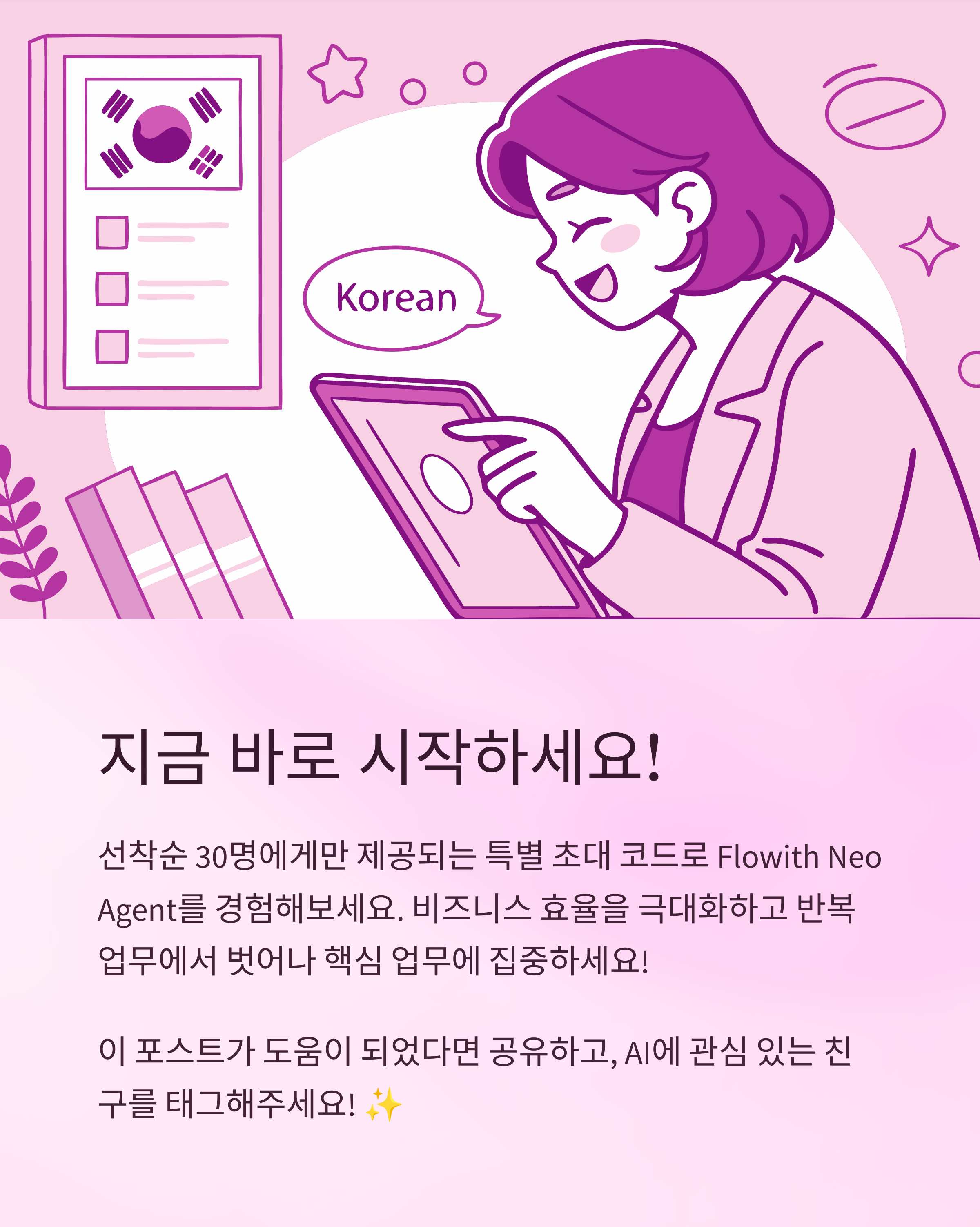 이제 AI는 더 이상 먼 미래의 이야기가 아니에요. Flowith Neo Agent와 함께라면 누구든지 이 혁신적인 기술을 내 비즈니스에 적용할 수 있습니다. 😊