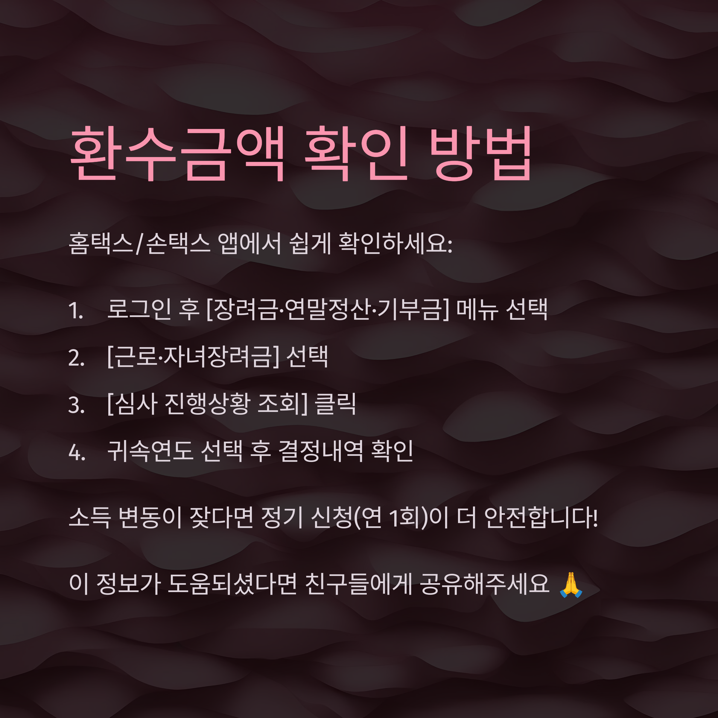 이 글이 근로장려금 환수 문제로 고민하셨던 분들께 조금이나마 도움이 되었으면 좋겠네요. 더 궁금한 점이 있다면 댓글로 남겨주세요! 😊