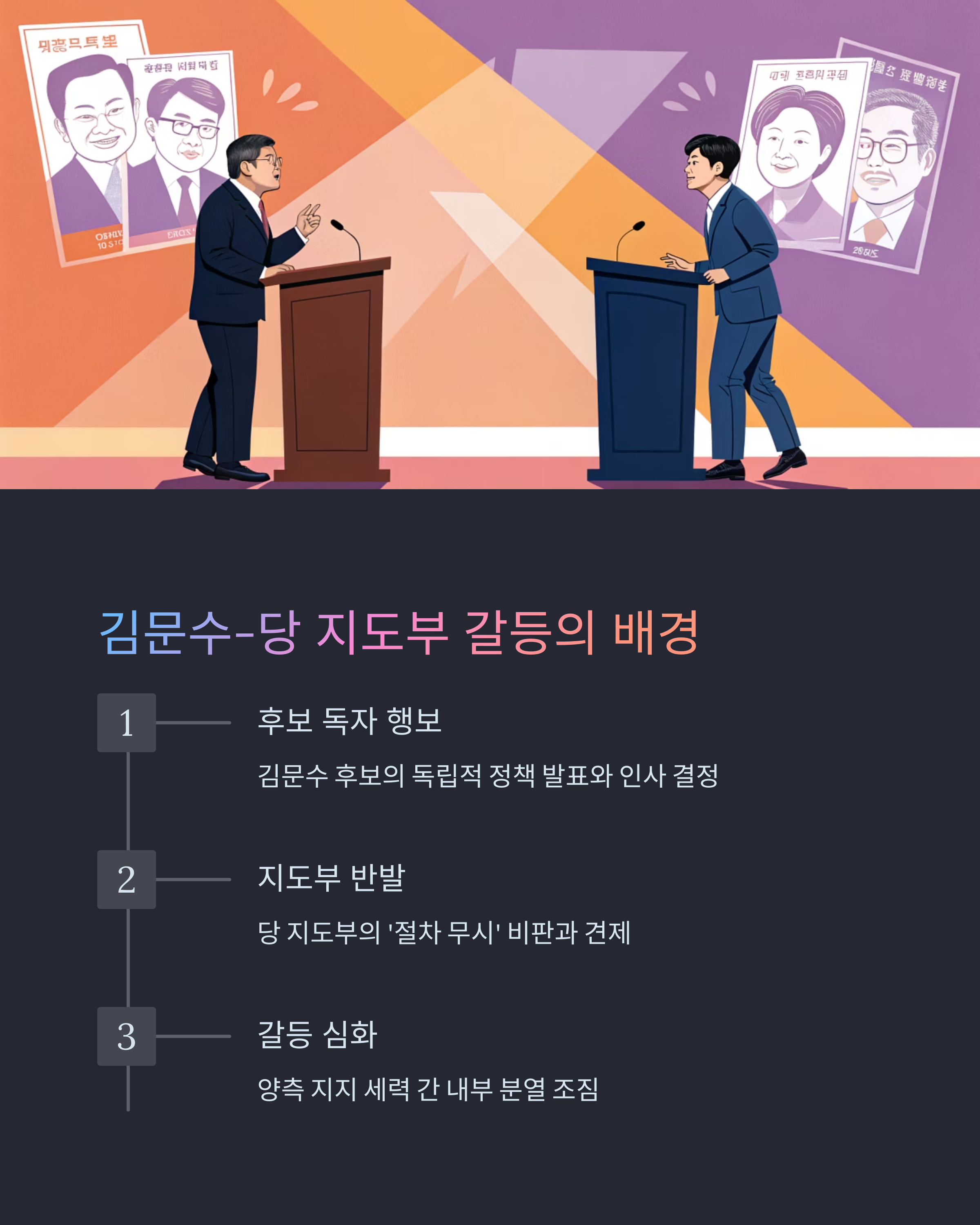 - 2025년 김문수 후보 vs 당 지도부 갈등 요약