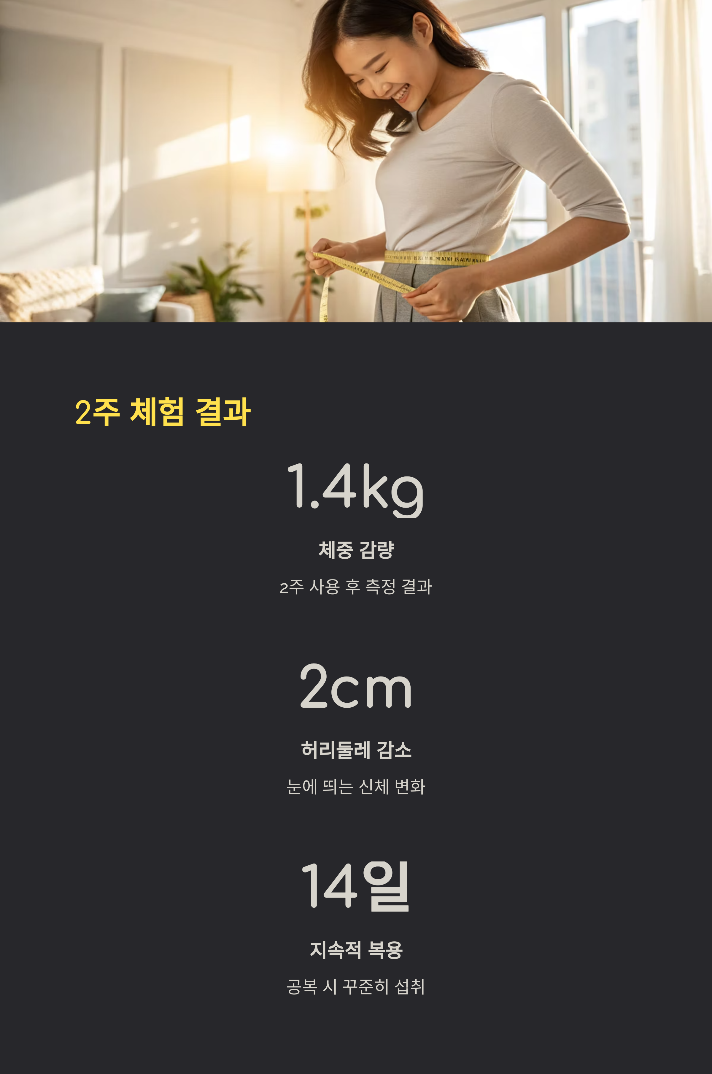 약 1.4kg 감량! 물론 개인차는 있겠지만, 전 꽤 만족스러웠어요. 변비도 좀 나아졌고요.