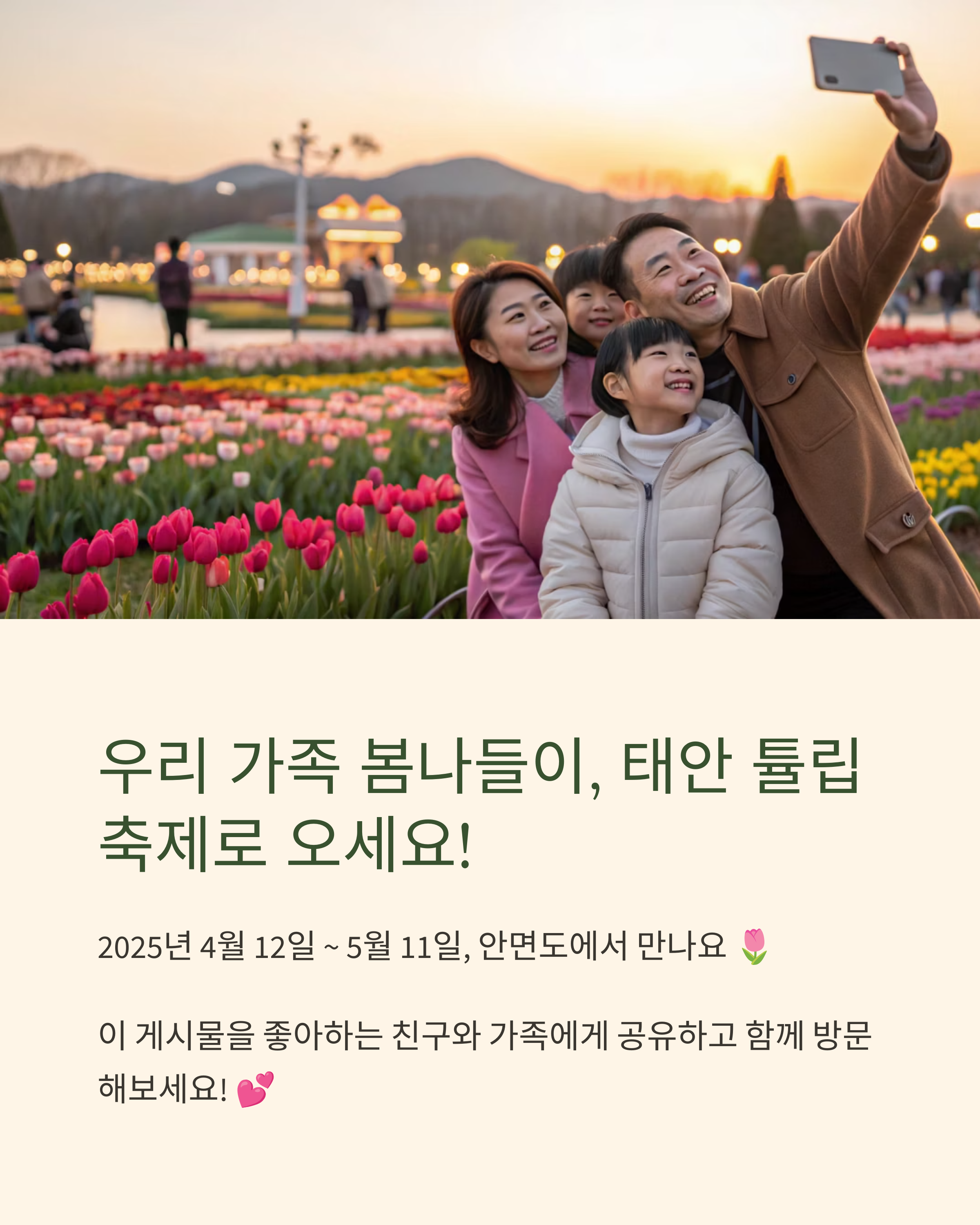 2025년 봄, 꽃과 함께하는 힐링 여행을 고민 중이라면 태안 안면도 튤립축제는 더할 나위 없는 선택이에요. 올해는 볼거리와 즐길 거리가 예년보다 훨씬 풍성하고, 무엇보다 SNS에서 핫한 야간 조명존이 대세라는 점! 아이들과 함께, 연인과 함께, 부모님 모시고 가도 모두가 만족할 수 있는 진짜 ‘가치 있는’ 축제랍니다.