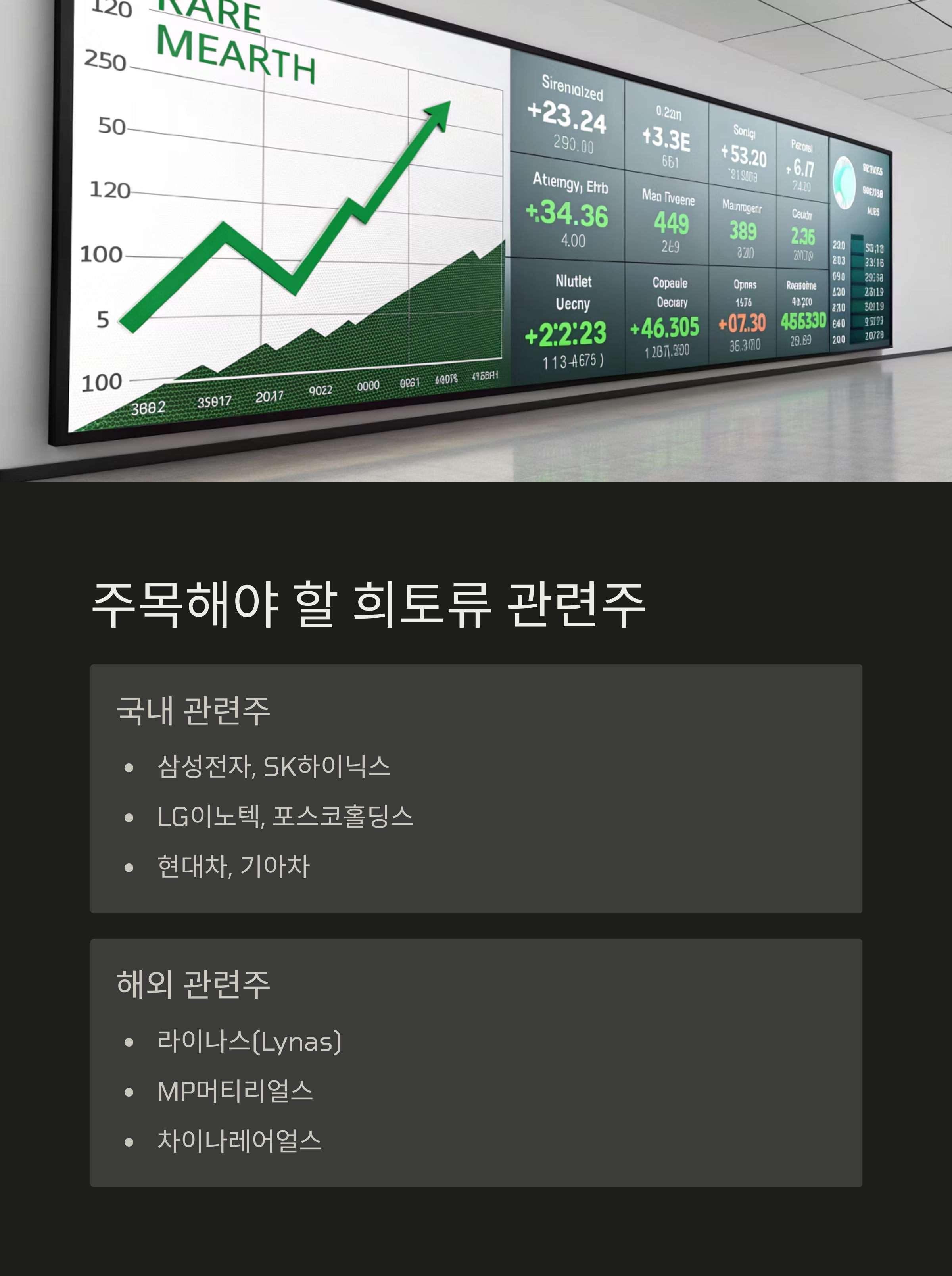 2025년 하반기엔 미국과 호주의 희토류 공장 완공이 예정되어 있어요. 그땐 또 다른 흐름이 시작될지 모릅니다. 제가 다시 정리해드릴게요 :)