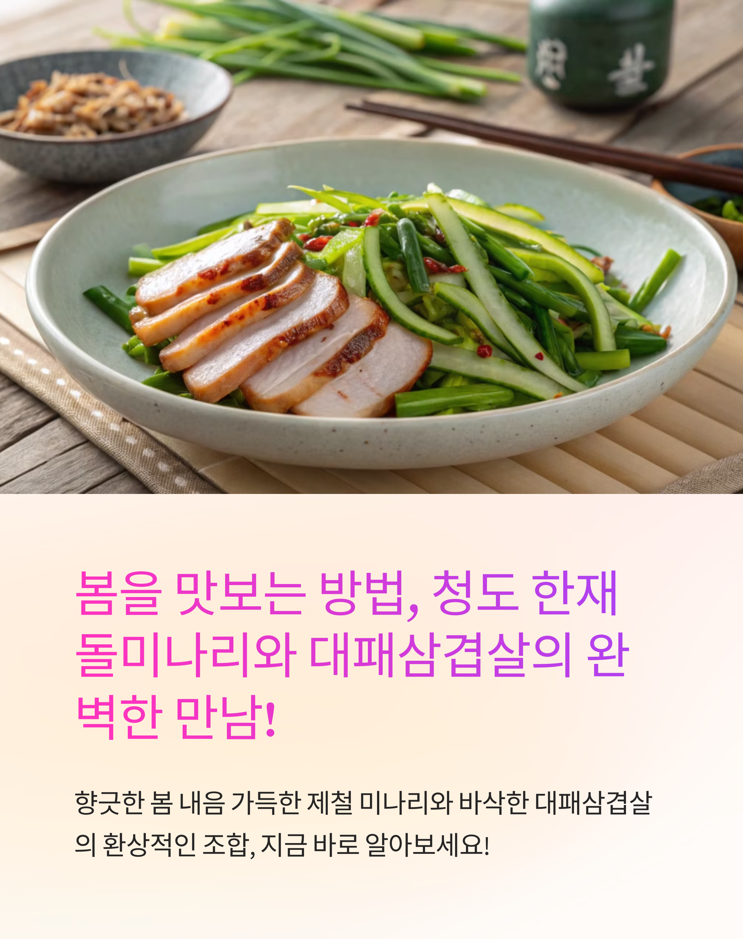 청도 한재 미나리와 대패삼겹살의 조화! 봄철 별미 삼겹살데이 레시피향긋한 돌미나리와 노릇한 삼겹살이 만난다면? 청도 한재 미나리로 완성하는 봄날의 한 상, 지금 공개합니다!안녕하세요 미식가 여러분! 봄이 오면 유독 입맛이 살아나는 이유, 다들 아시죠? 바로 봄 제철 식재료들 때문인데요. 특히 ‘청도 한재 미나리’는 향긋하면서도 아삭한 식감으로 유명하죠. 요즘 마트에서도 돌미나리가 눈에 띄게 많아졌는데, 이 미나리를 어떻게 먹으면 가장 맛있을까 고민하다가 결국 대패삼겹살과 구워 먹는 조합을 선택했어요. 삼겹살데이에 맞춰 한상 제대로 차려봤는데, 진짜 밥도둑이 따로 없더라고요! 오늘은 봄 향기 가득한 돌미나리와 대패삼겹살로 만든 특별한 집밥 레시피를 공유할게요 :)목차청도 한재 돌미나리의 특징 돌미나리와 대..